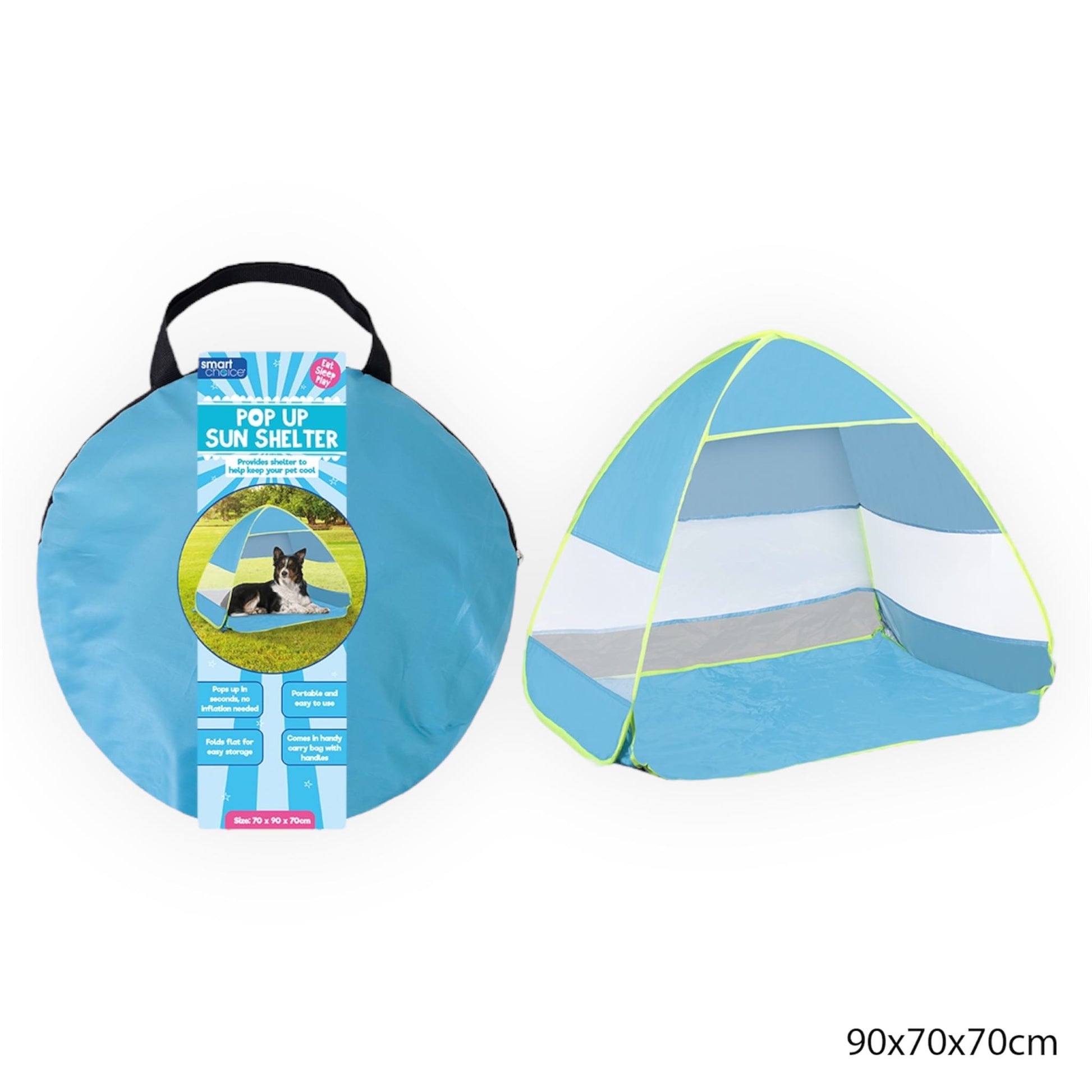 The Smart Choice Pop-Up Sun Shelter is the perfect companion for keeping your dog cool, comfortable, and protected on sunny days.