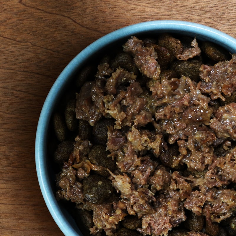 Top it, mix it, taste it... love it! Simply add to your dog’s favourite dry, wet or raw food for a savoury sensation!