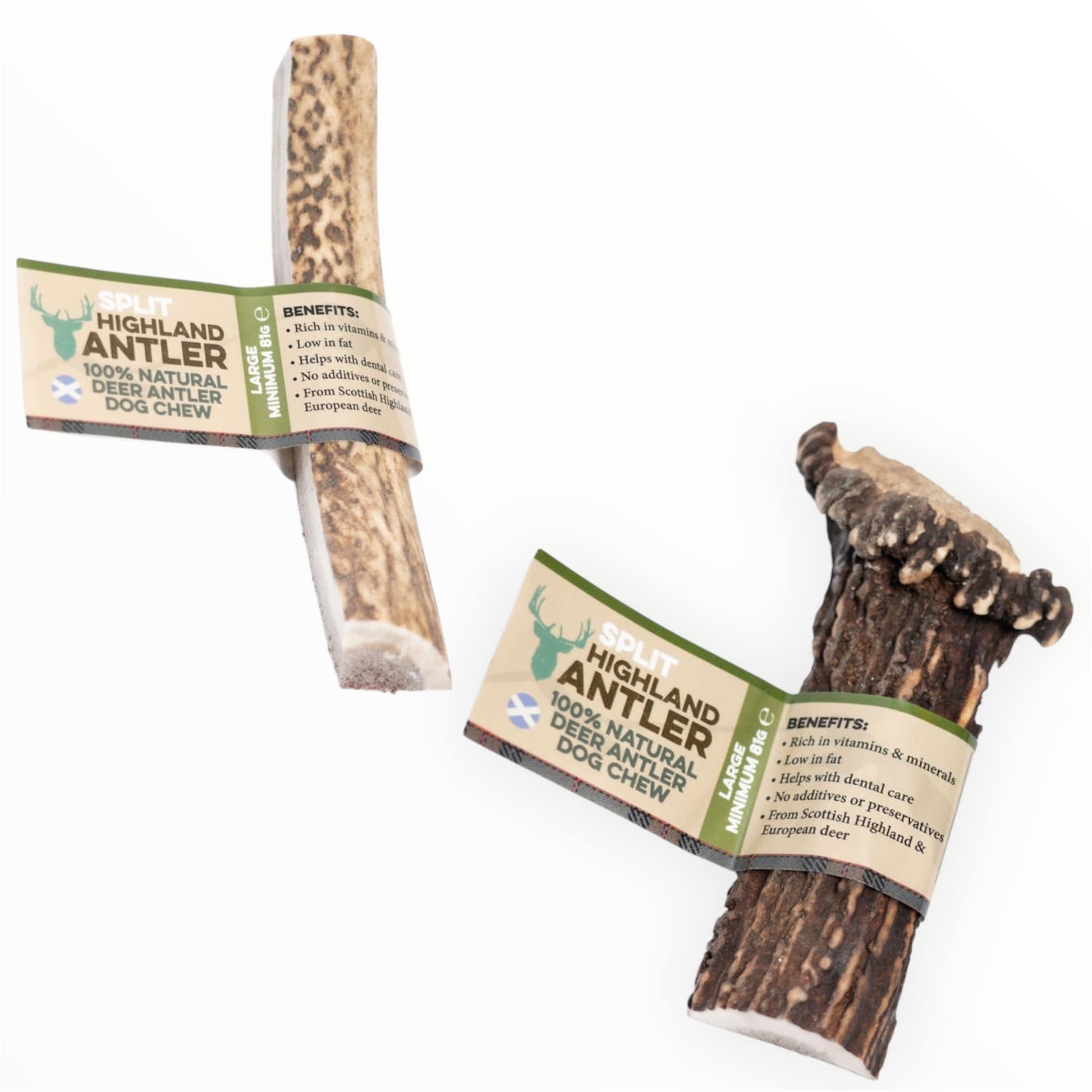 Sourced from naturally shed deer antlers found in the highlands, these chews are rich in nutrients, including calcium and phosphorus, promoting dental health and providing a durable chew for dogs of all sizes.