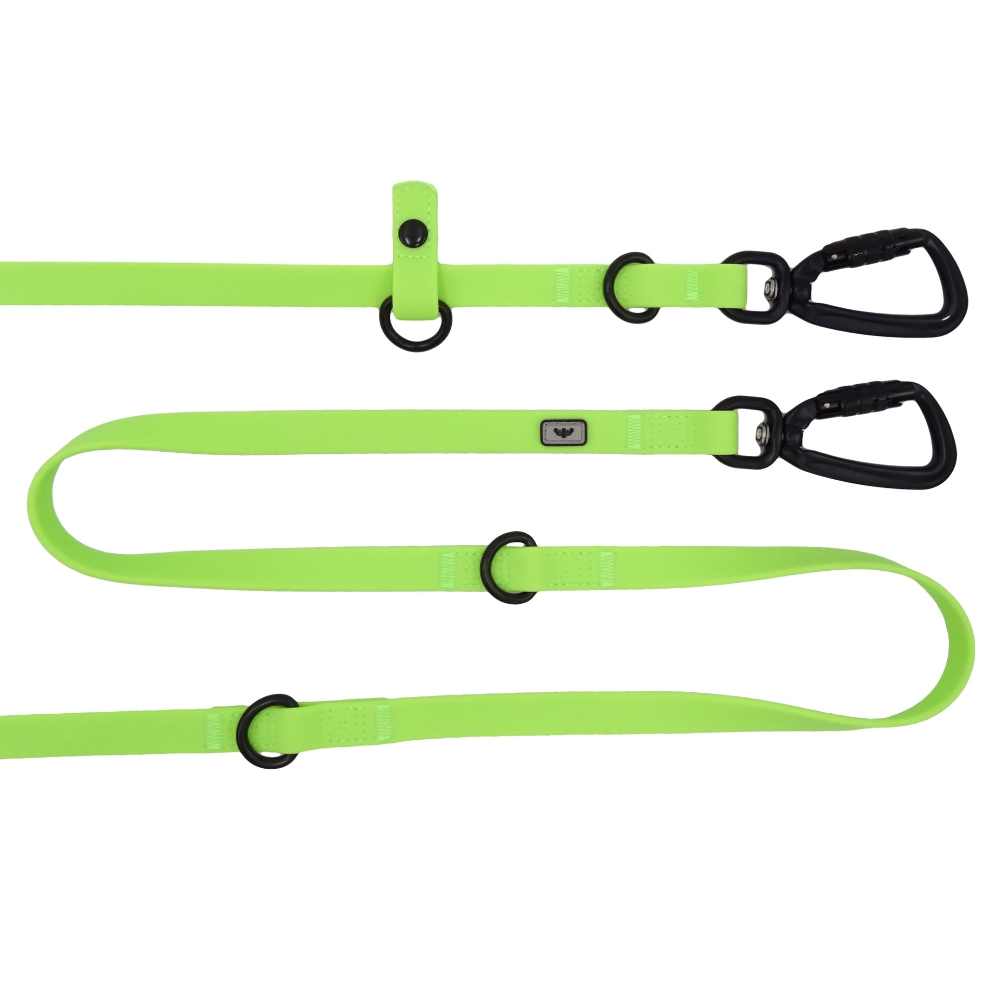 The SwaggerPaws waterproof double-ended classic dog lead offers multiple walking configurations with a clever combination of fixed-position and adjustable D-rings, allowing you to easily adapt the lead to suit your style, your dog, and your day.