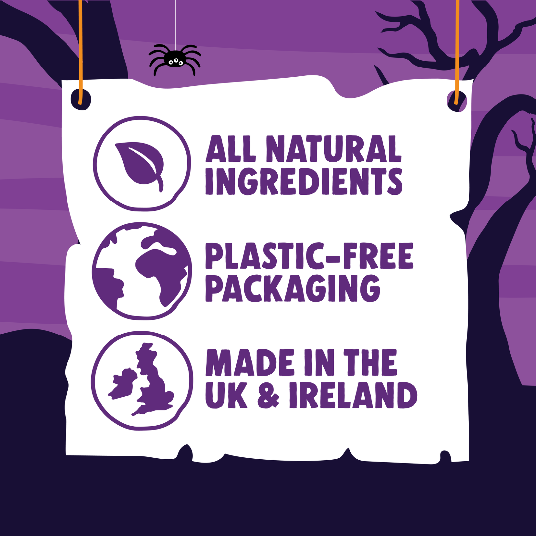 A terrifyingly tasty treat for your pup. R.I.P the pack open to find 4 tasty vegan-friendly soft-baked sticks. Made with fresh pumpkin, apple and cinnamon. 100% vegan.