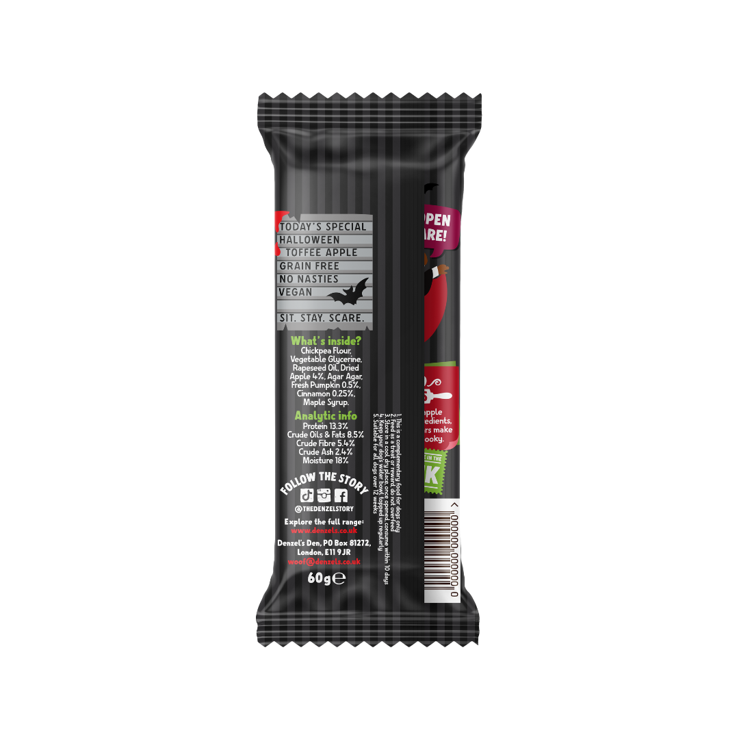 Denzel's Limited Edition Toffee Apple Soft-Baked Bars are the perfect autumn/halloween snack for your dog.